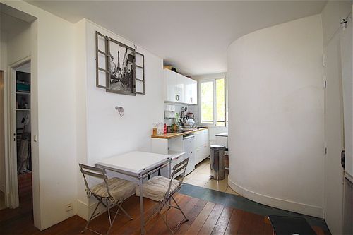 Dans un immeuble ancien, au 3ème étage. Bel appartement de 2 pièces sans aucun e place perdue composé d’un beau séjour avec cuisine ouverte donnant sur une cour calme avec une vue agréable sur de la verdure, d’une chambre avec des rangements donnant sur cette même cour.