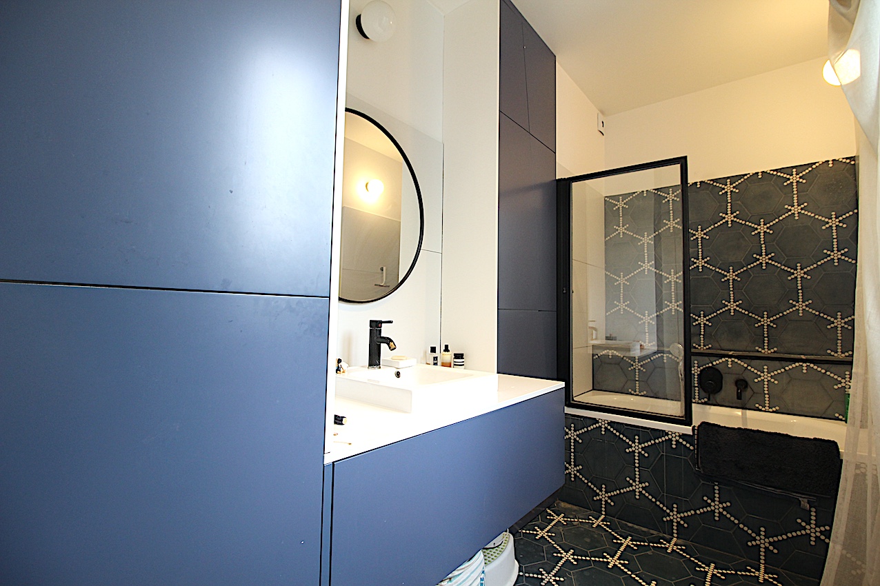 Un appartement de 3 pièces traversant avec un plan agréable composé d’un très beau séjour avec une cuisine ouverte donnant au calme sur une jolie et grande cour verdoyante, de 2 chambres avec des rangements. Jolie salle de bains avec baignoire. WC séparés.